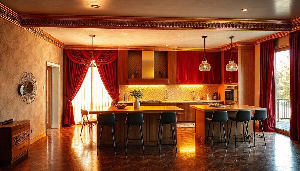 پرده های کلاسیک برای اپن آشپزخانه