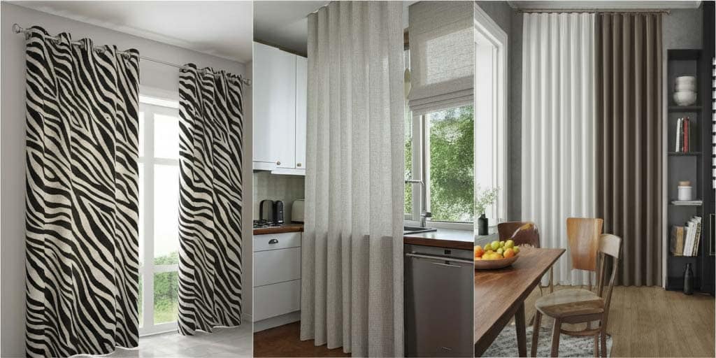 تصویر نمونه پرده پانچ، با طرح راه راه زبرا در آشپزخانه های کوچک