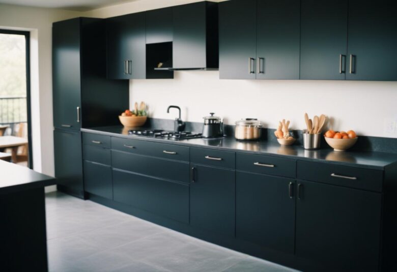 - انتخاب رنگ مناسب برای دیوارها: رنگ دیوارها باید با رنگ کابینت هماهنگ باشد. برای کابینتهای با رنگ روشن، میتوانید از رنگهای تیره برای دیوارها استفاده کنید و برعکس.