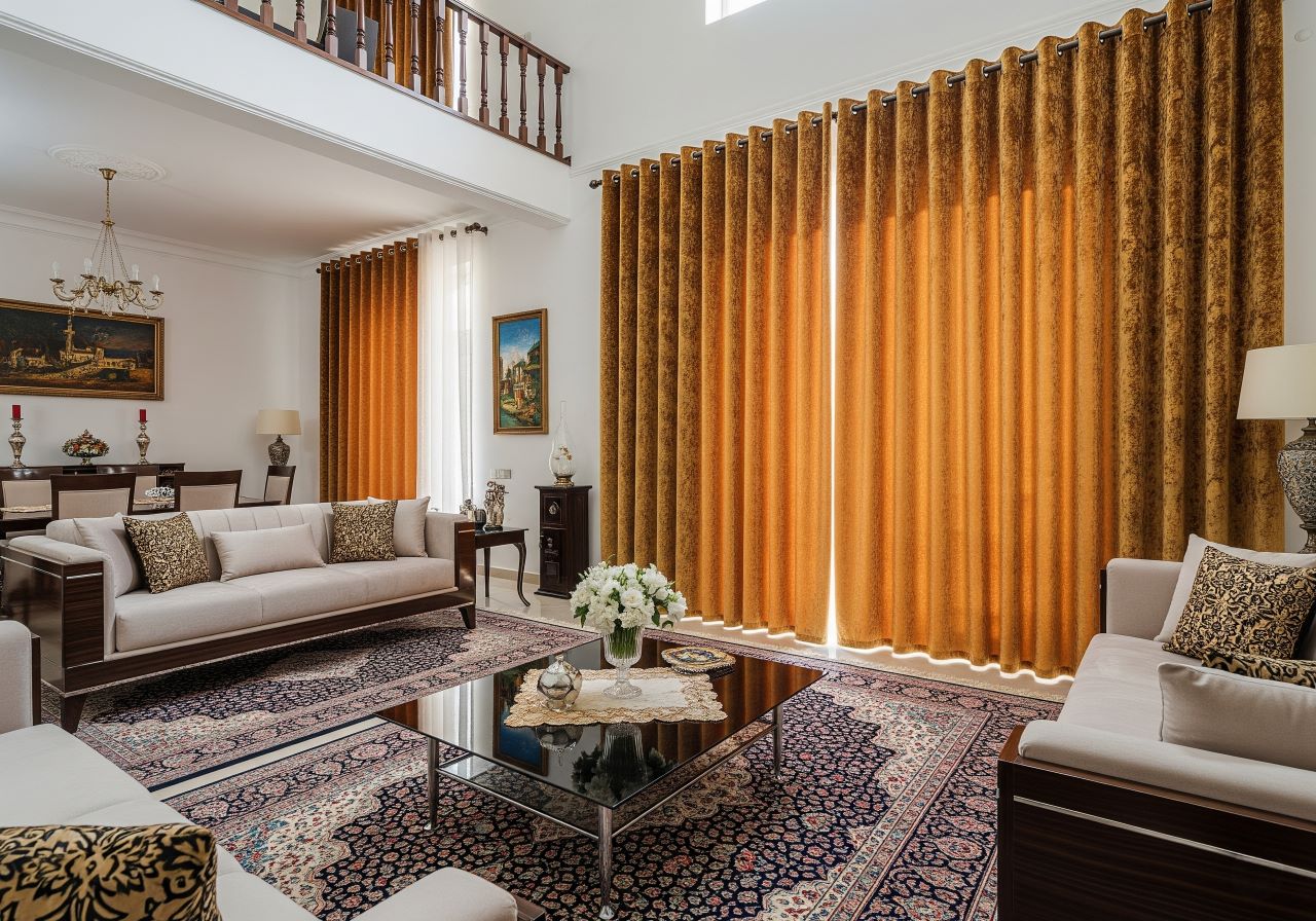 نکته کلیدی در استفاده از این پرده، ایجاد تعادل است. بهتر است آن را با مبلمان سادهتر و دیوارهایی با رنگ خنثی ست کنید تا از شلوغی بیش از حد فضا جلوگیری شود و زیبایی پرده به خوبی به چشم بیاید.