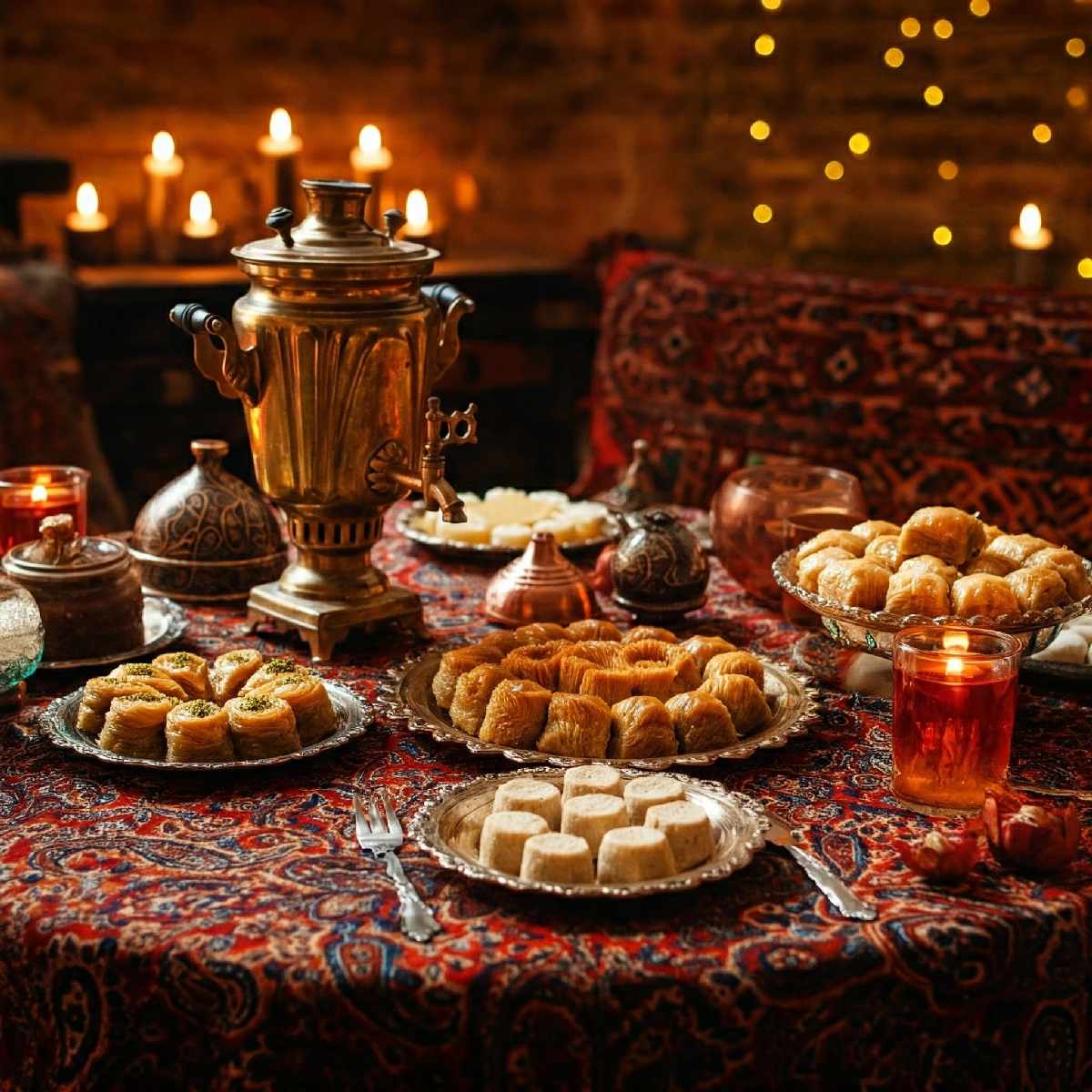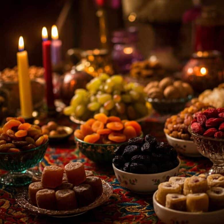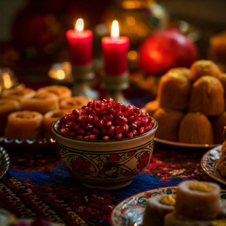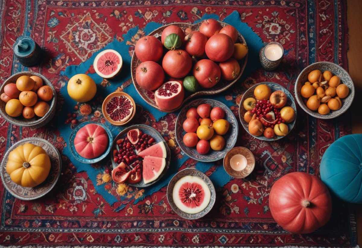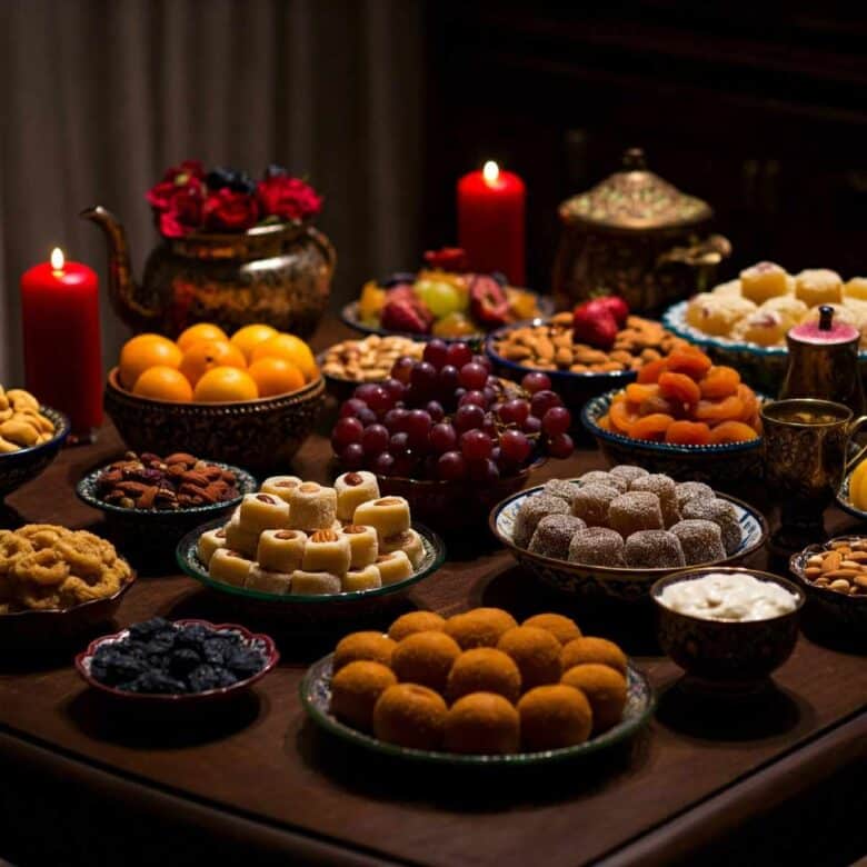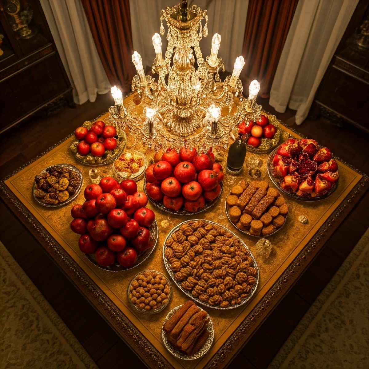 - دورهمی و شبنشینی: خانوادهها در منزل بزرگترها جمع میشوند و تا طلوع خورشید در کنار هم بیدار میمانند.