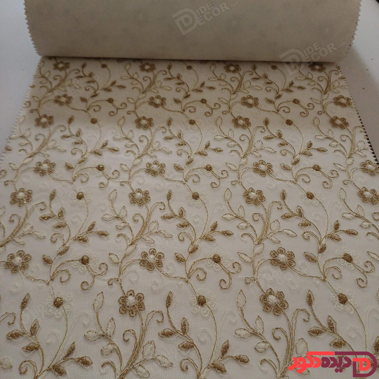 پرده شب و روز گلدوزی برجسته طلایی سفید کد GL2C