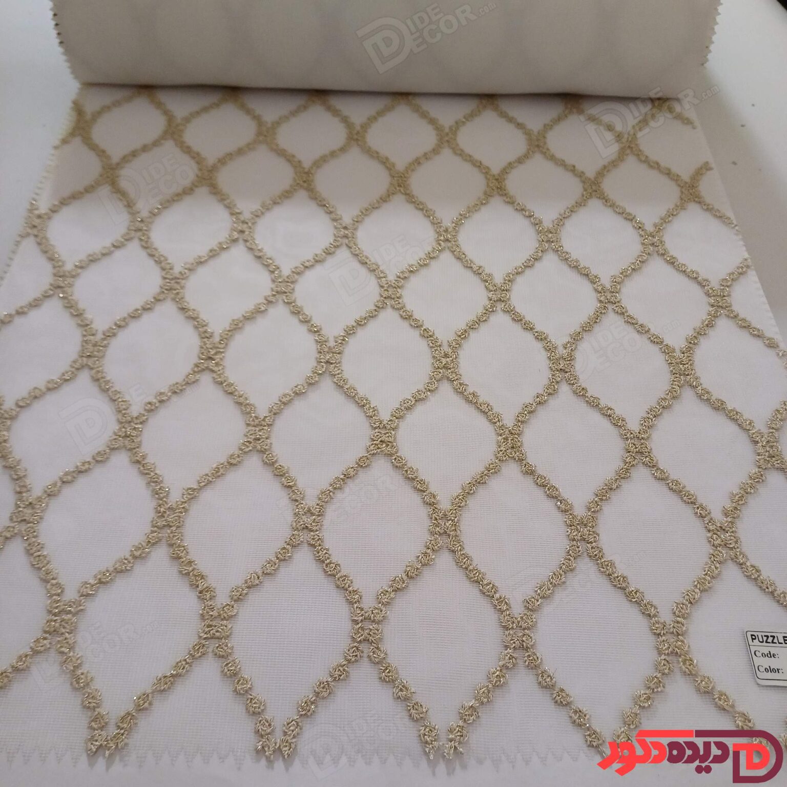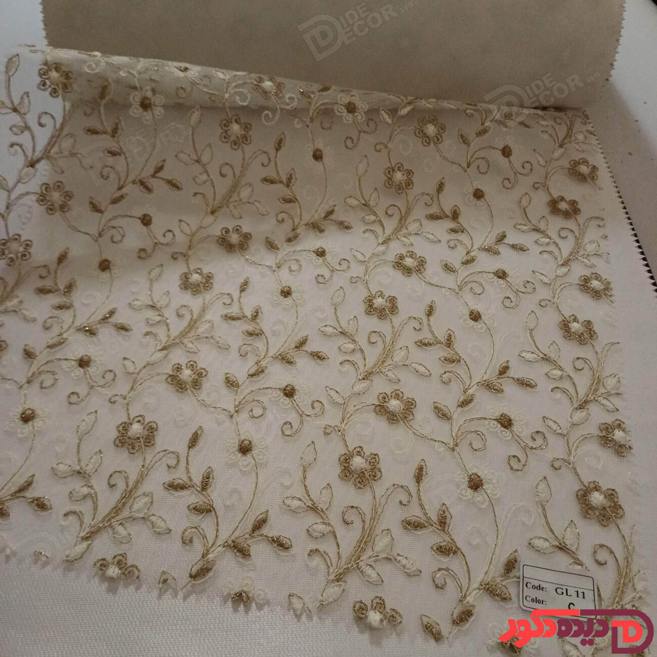 پرده شب و روز گلدوزی برجسته طلایی سفید کد GL11C