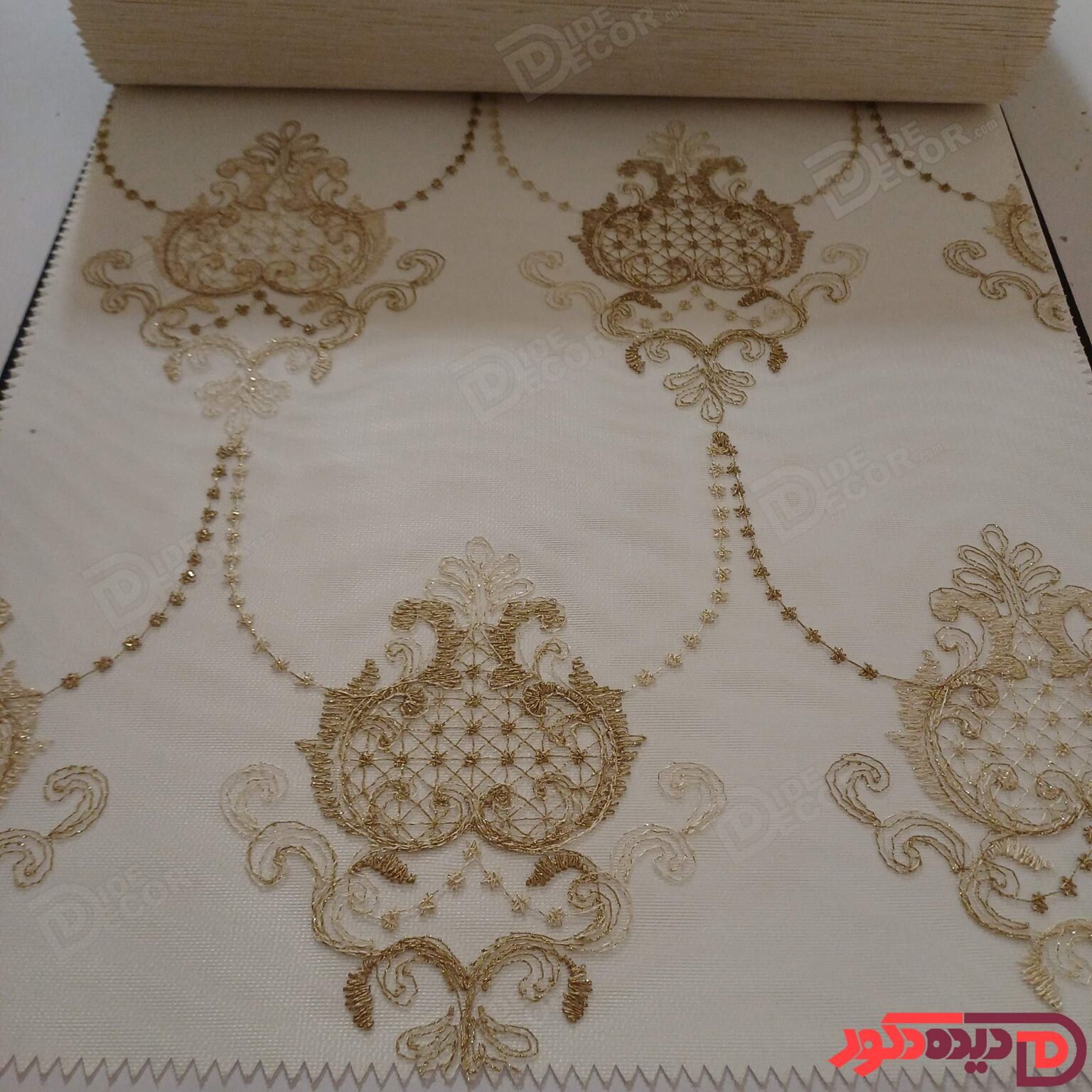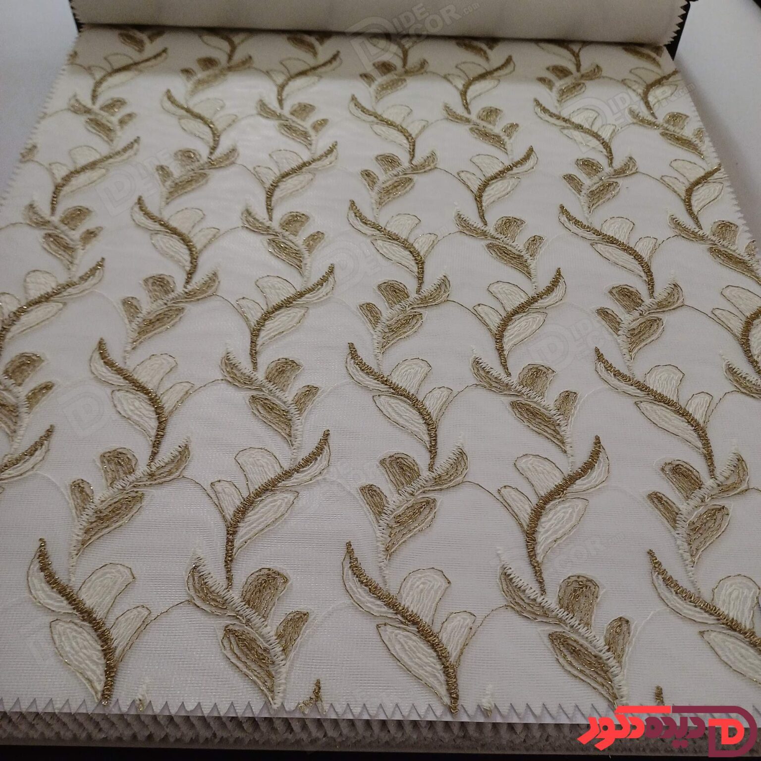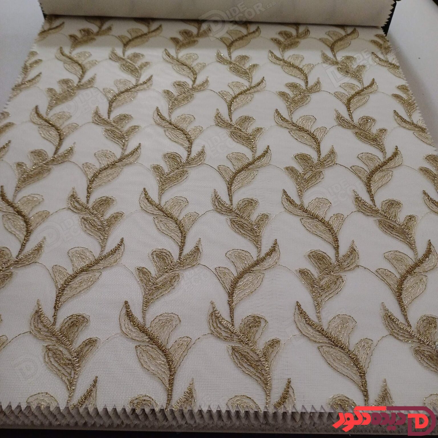 پرده شب و روز گلدوزی برجسته طلایی سفید کد GL12C
