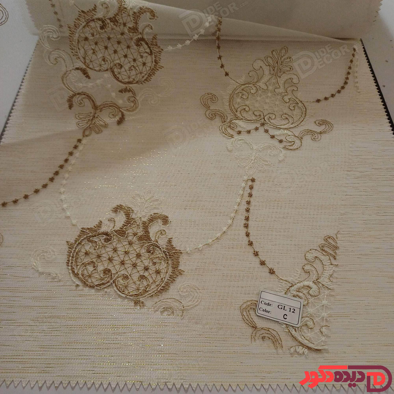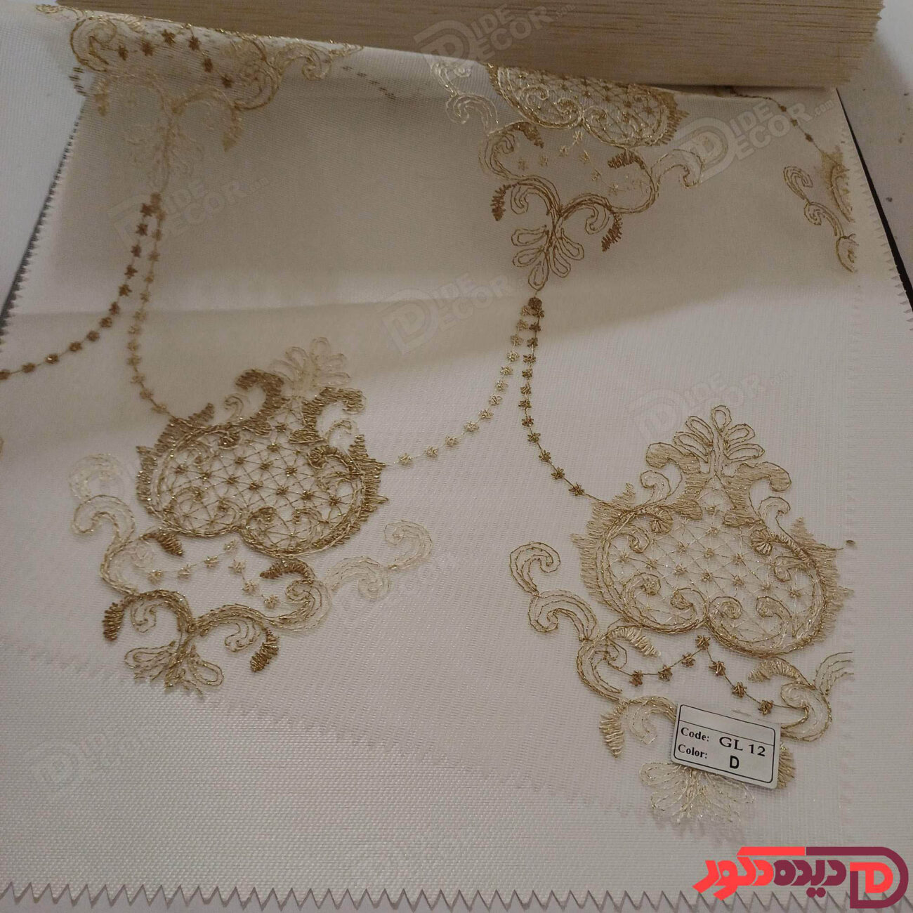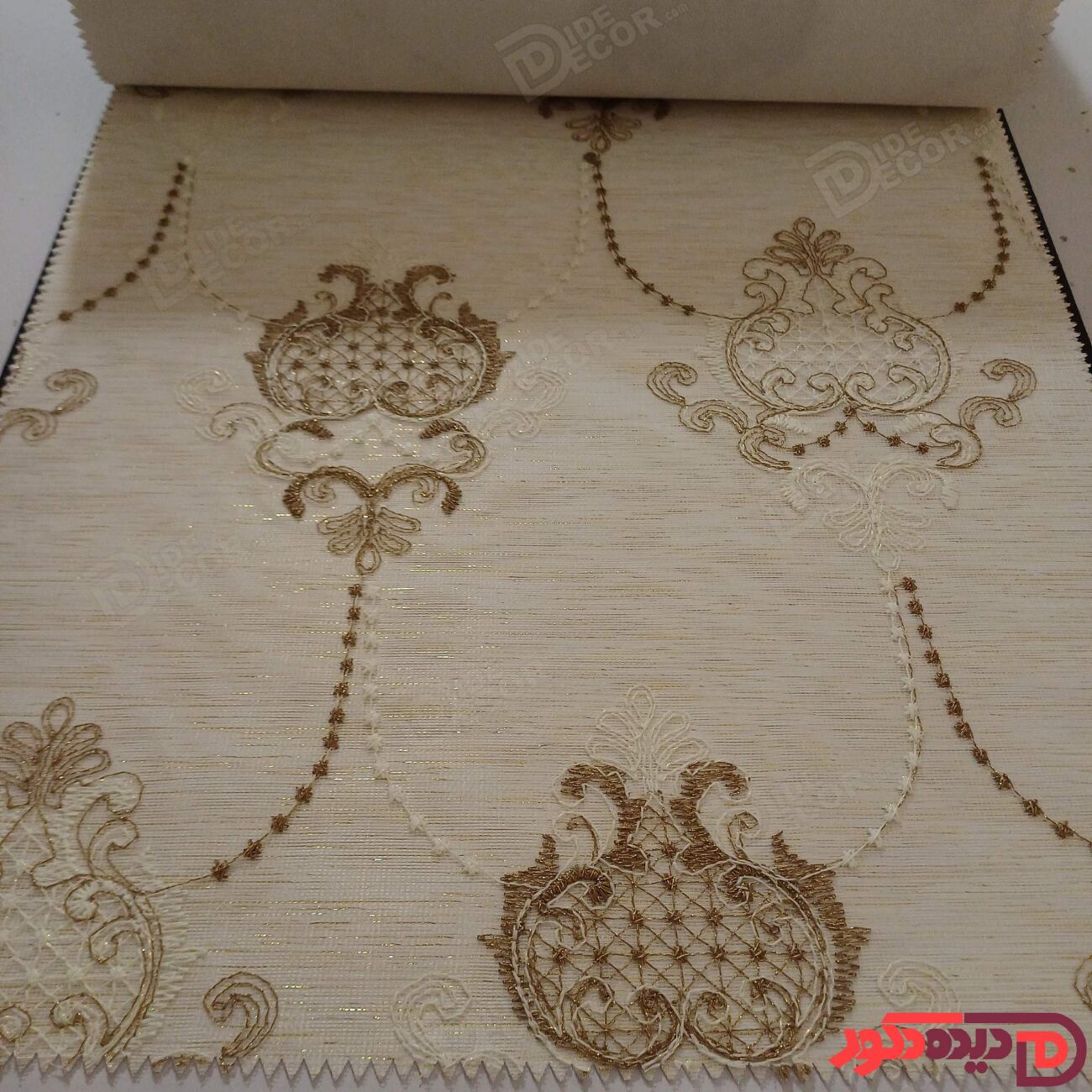 پرده شب و روز گلدوزی برجسته طلایی سفید کد GL12C