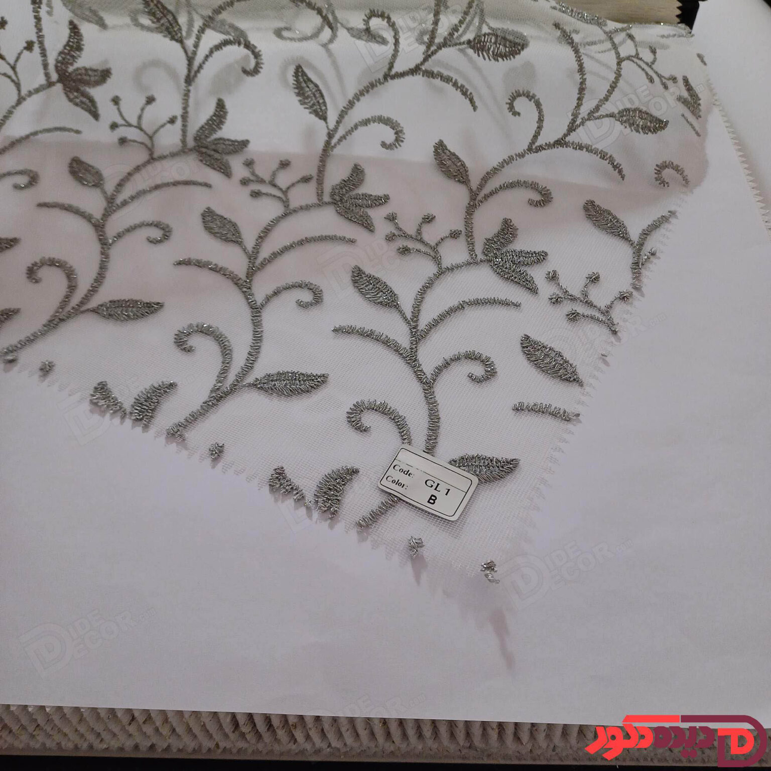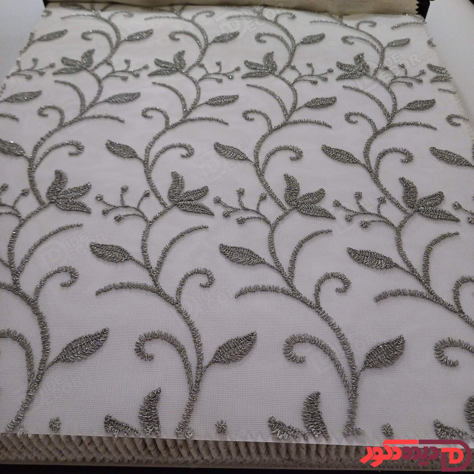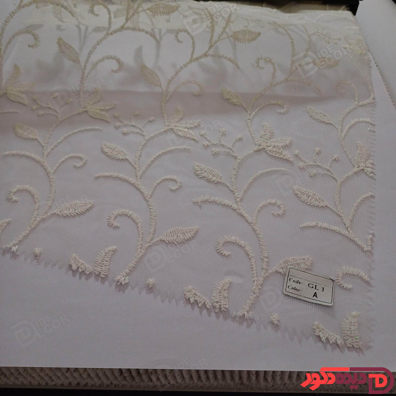 پرده شب و روز گلدوزی برجسته سفید نباتی کد GL1A