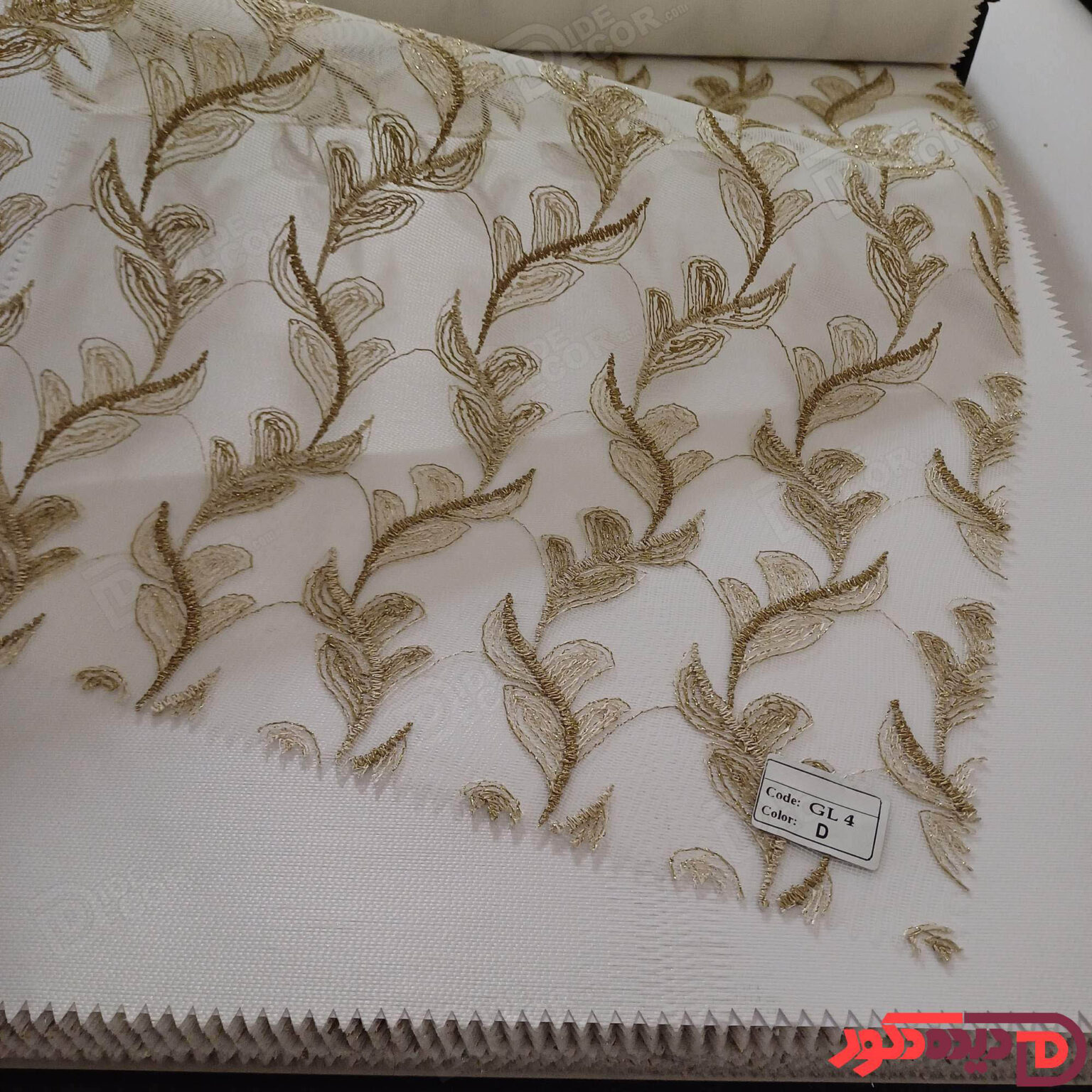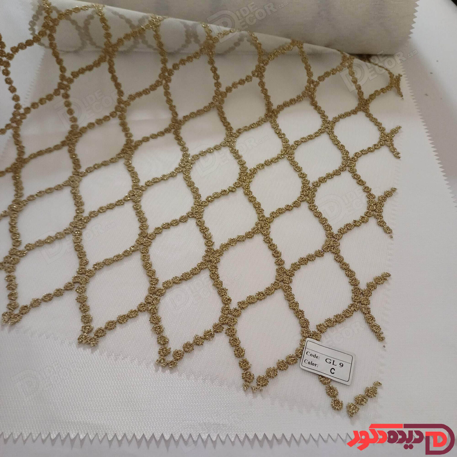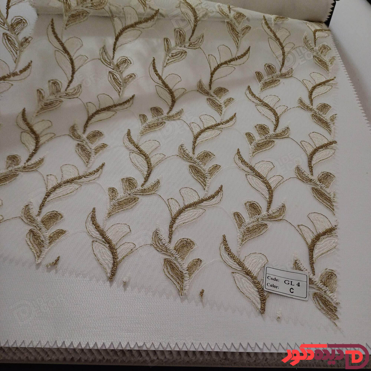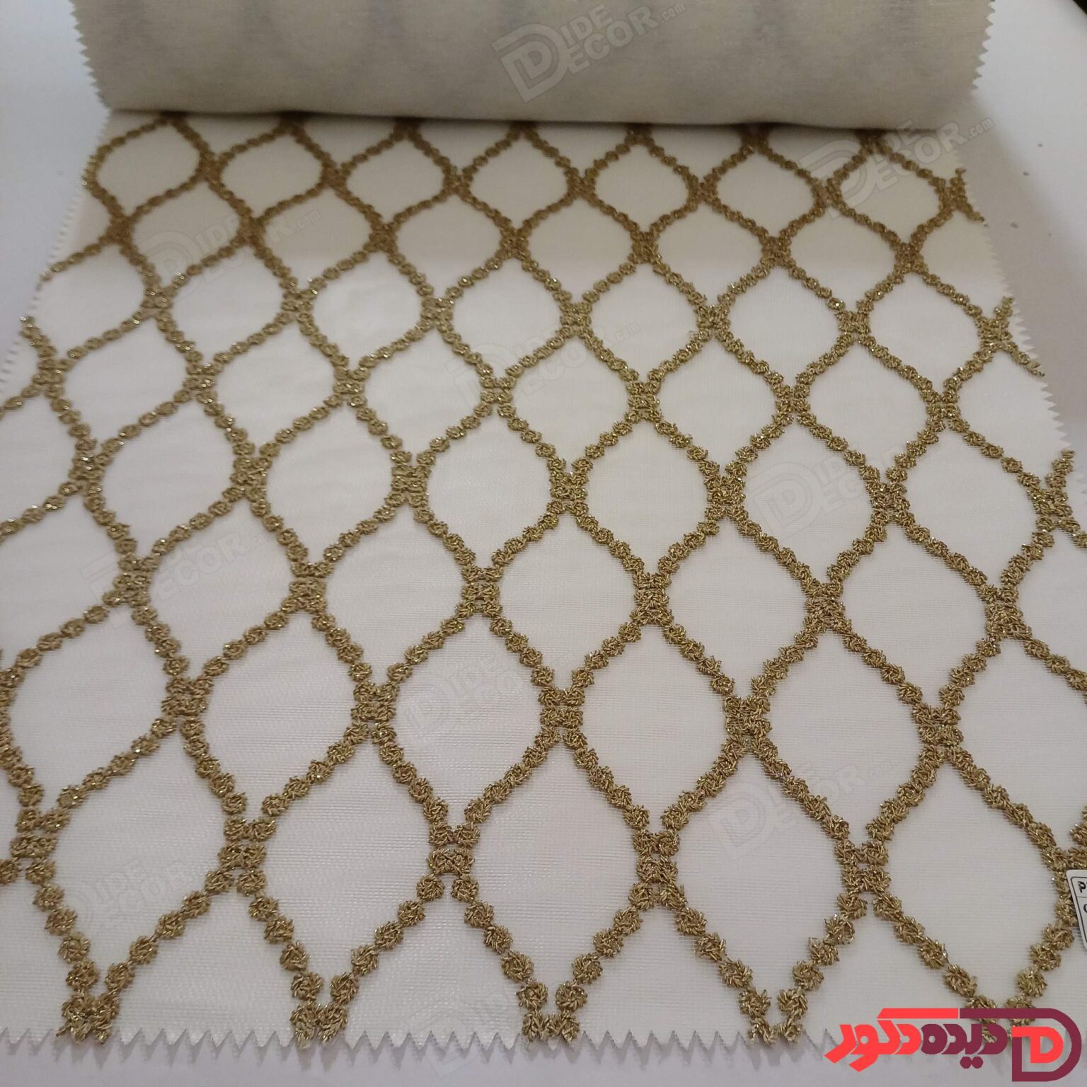 پرده شب و روز گلدوزی برجسته طلایی سفید کد GL4C