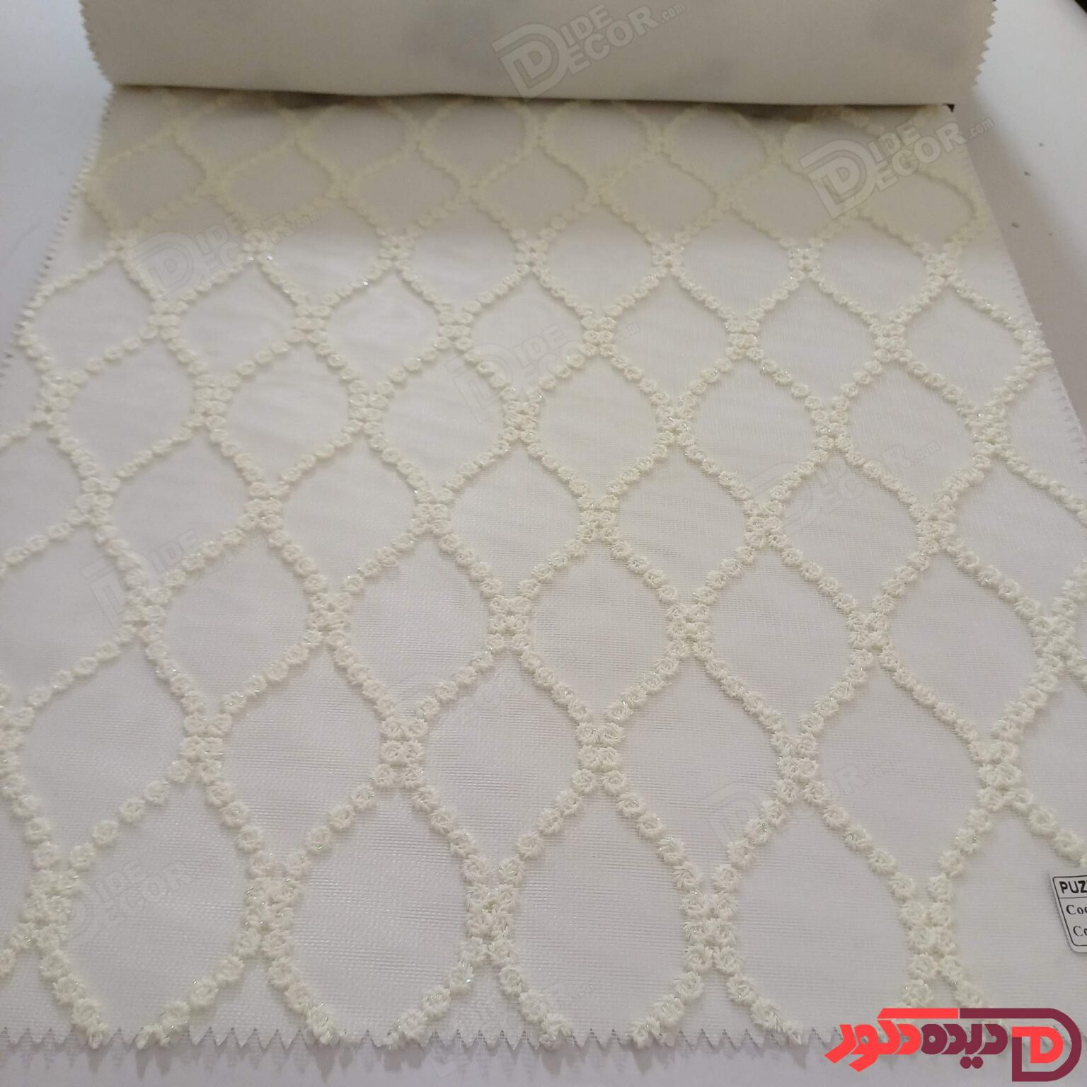 پرده شب و روز گلدوزی برجسته سفید کد GL14A
