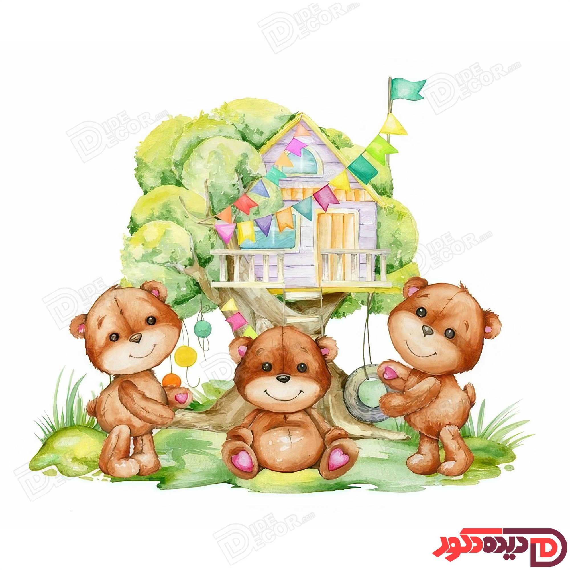 پرده زبرا دومکانیزم طرح خرس و خانه درختی کد KZD-060