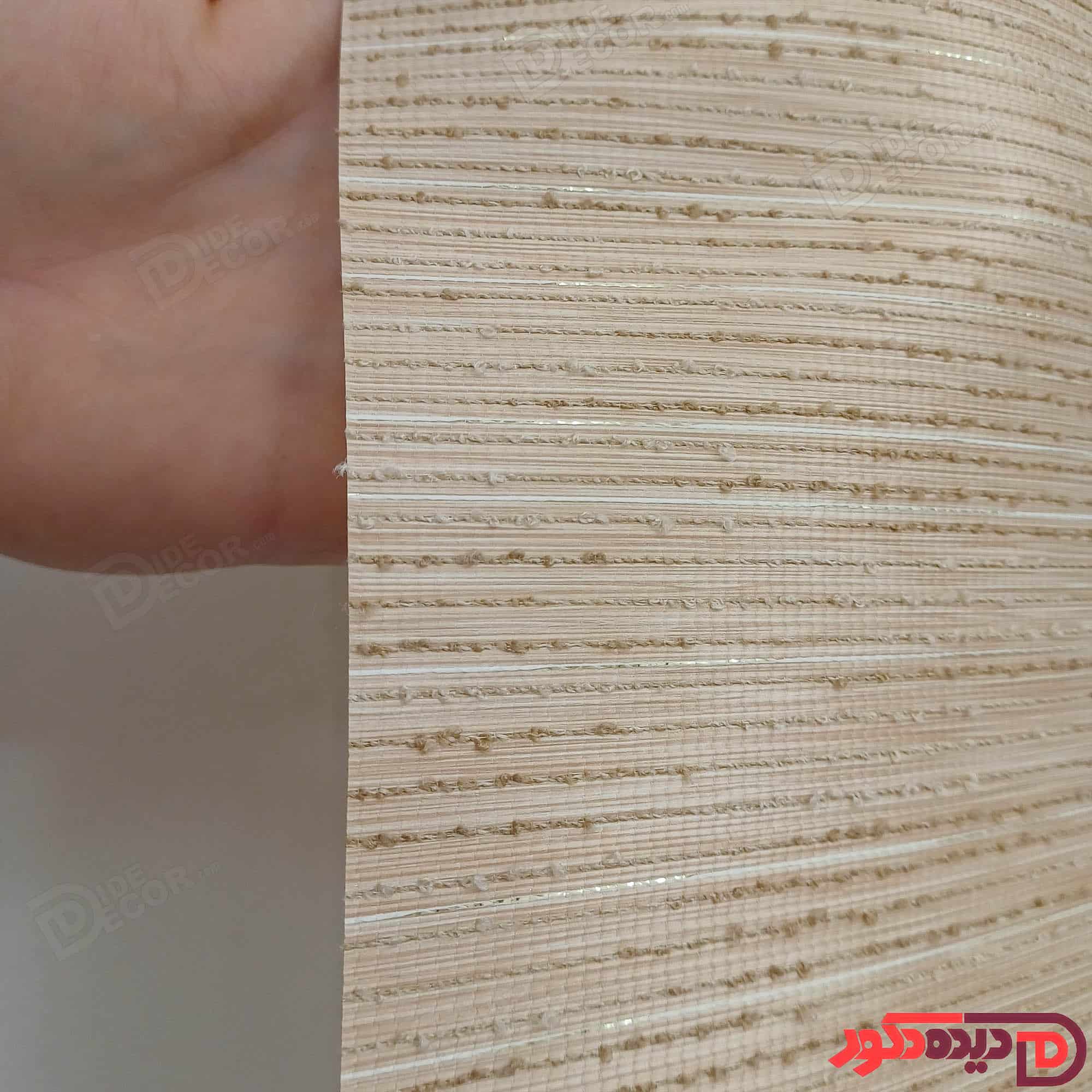 این پرده شید کرم تیره دارای پارچهای خاص با رگههای درخشان لمه طلایی است.
